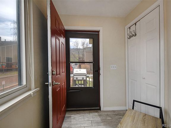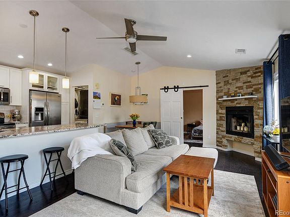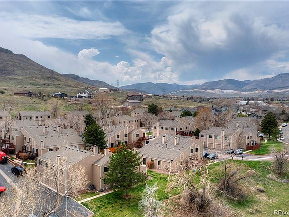 Beautifully updated townhome in the desirable Table Mountain Heights community of Golden with miles of trails outside your front door and views of North Table Mountain as your backdrop. Every inch of this efficient open floor plan has been fully remodeled including wide plank hardwood floors throughout, updated kitchen cabinets, granite countertops, stainless steel appliances and a striking floor-to-ceiling stone surround fireplace. Fun accents include the built-in dining area banquet, custom sliding barn doors and contemporary light fixtures. Dual primary bedrooms include vaulted ceilings, walk-in closets and attached en-suites with updated tile, cabinetry and granite countertops. A spacious updated laundry room with the washer and dryer included, a one-car garage plus an additional reserved parking space add function and convenience for all your parking and storage needs. Enjoy grilling on your outdoor deck while overlooking North Table Mountain. Take advantage of the incredible trail access and easy commuting to both Denver, Golden and Boulder.