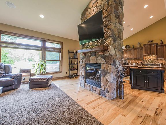 Stunning custom built rambler with a loft~Gorgeous private lot with a dream back yard including a 3 tier pond & wet bar by patio door~The open great room features a floor to ceiling two sided stone fireplace & vaulted ceiling~The gourmet kitchen features alder cabinetry, granite, stainless appliances, double ovens and pantry~The master suite boasts a bubble tub, steam shower & heated floors~There are 2 add'l bedrooms & bath on this level~The upper loft features a bar & game room~Tons of upgrades