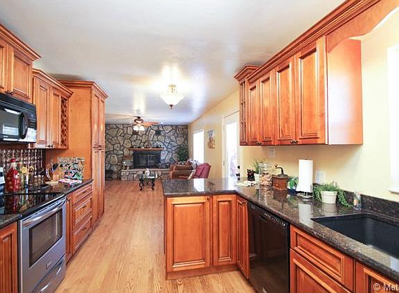 Best of the country in unincorporated Adams County but only one block to fabulous park! Home has new kitchen with beautiful cabinets, granite countertops and sink, refrigerator, stainless steel stove with smooth top, hardwood floors, and walk in pantry with beautiful glass door that says "Pantry". All hardwood floors in main living area except bedrooms which has new carpet 8/2014. Huge rec. room with 4th bedroom (non-conforming) in basement. 44'x21' barn with 3 stalls, tack room, automatic waterer, storage area for hard and wired with 220, chicken coop. Separate 39'x27' shop/garage with 2 garage doors & 220 amp service. Also another small 128 sq.ft. shed plus metal storage shed. House & barn recently painted. Exterior water feature.