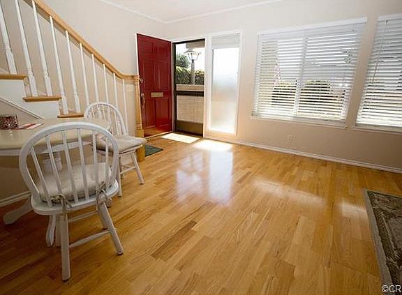 Absolutely stunning and unique Tiburon Townhome. What's so unique about it? It's the Balboa model (3 bedroom, 2 story) END unit. The condition is impeccable. Beautiful hardwood floors downstairs, light neutral carpet upstairs, scraped ceilings, vinyl windows and sliding door, six panel doors throughout interior, newer front entry door, all newer appliances, kitchen cabinets with pull-out drawers, granite countertops in kitchen, recessed lighting, walk-in pantry, bathrooms beautifully upgraded, lovely brick patio for relaxing or entertaining. You will want to call this place HOME!