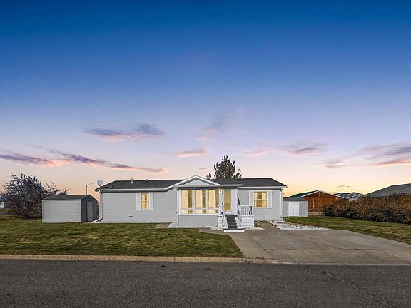 A roomy manifactured home on its own 13,553 sq ft corner lot in a central location! The main part of the home boasts 3 bedrooms & 2 baths, as well as an open concept kitchen/dining/living room area. You will find a beautiful 140 sq ft Sun Room at the home's entrance, as well as two sheds and a back up generator that are staying with the property. Dog kennel area in the back. There is room to build a garage if desired. School disctrict 1. For your own private tour, please call Tijana Jones at 701-648-0800. Thank You! :)