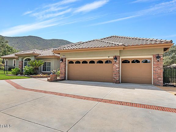 This single-story estate offers refined California living on over three-quarters of an acre in one of Newbury Park's most serene and private settings. Designed for effortless indoor-outdoor flow, the 4,417 sq ft residence is perfectly sited behind a long private drive and backs to open space with expansive mountain views. The backyard is a true retreat, backing to open space with multiple patios, a sparkling pool and spa, and a 740 sq ft covered pavilion with fireplace, TV hookups, and built-in outdoor kitchen. Fruit trees, garden beds, and mature landscaping complete the experience.