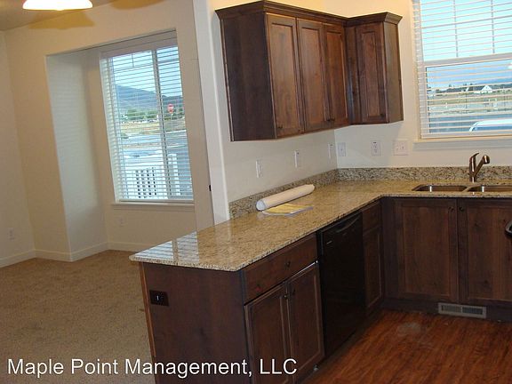 Beautiful 2 bdrm/1.5 bath Townhome in Eagle Mountain city center - Beautiful townhome in Eagle Mountain city center. Two-story 2 bedroom/1.5 bathroom - approx. 1020 sq. ft. finished plus unfinished basement for storage. This unit is Plan B and will rent for $875 plus $875 deposit. Beautiful upgrades including gorgeous cabinets and railings, private balconies, 2" wood blinds, all kitchen appliances included, washer/dryer hookups. Landscaping, lawn maintenance, snow removal, and trash removal included with no HOA fees. Several playgrounds and clubhouse with kitchen, fireplace, patio for tenant use. 12 month lease with option to renew or continue month-to-month. Application is $25 and includes a standard credit/background check. Please apply at www.maplepointmanagement.com. No Pets Allowed (RLNE3243726)
