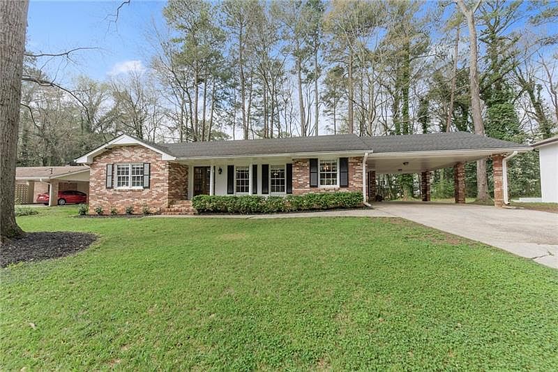 Bright cozy 4-sided brick 3 bed/2 bath ranch on quiet cul-de-sac street close to great schools, shopping and easy access to I-85, 285. Open concept. Renovated Kitchen. 2 year old Roof. Open living room, complete with fireplace, that opens up to expansive deck and porch swing overlooking private backyard. Custom french doors for Master Bath, updated vanity and lighting. Master bedroom has 2 closets! Hardwoods throughout. Unfinished and waterproofed basement, perfect for work out room and tons of storage space! Brand new HVAC. Nice front yard with in-ground automatic sprinkler system in front.