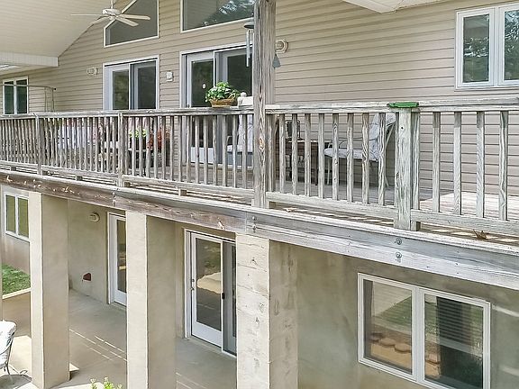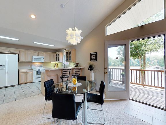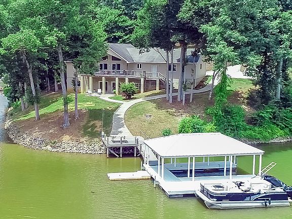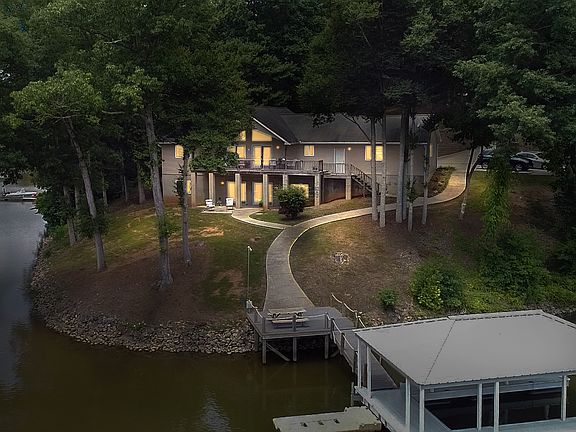 Waterfront - Close to many Metro-Hubs. This WF home has 3 BR plus a flex room and 3 full baths! Trex deck and vinyl covered dock with a jet ski ramp overlook 360 feet of shoreline. The main level showcases 2 bedrooms, including the master, and 2 full baths. Enjoy the view from the open great room with gas fireplace or step outside on the large deck over looking the quiet cove just off the main channel. The fully finished basement has plumbing in place for the wet bar or kitchenette of your dreams! Large space for entertaining leads right out to the lake! Full bath is separated with a door between the toilet and shower, both areas have a sink, very convenient for large groups! The 4th bedroom and flex room complete the living space of the basement that has 10 foot ceilings! Laundry room upstairs and utility/storage area down. Whole house generator, new heat and air system, security cameras, gun safe in the floor of the master closet. Come see all this custom built home has to offer!