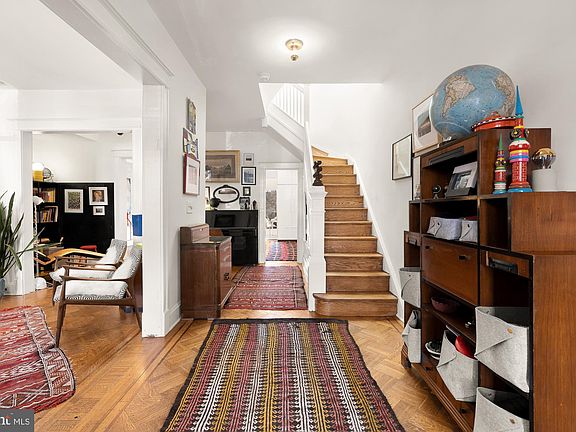 Charm and character enrich this artistic Mount Pleasant row home, offering three full levels of living space, a rear yard with patio and two decks, plus two-car garage parking. Original hardwood parquet floors grace a welcoming main level built for entertaining - or retreating from the world. An interior parlor offers flexibility, perfect for a library or reading room, and leads to the lovely, open dining area with exposed brick. The updated kitchen revels in a modern design and boasts luxe Fisher & Paykel appliances and abundant storage. French doors open to the sun porch, which glows with a south-facing wall of windows overlooking the generous rear yard, and a newly renovated powder room. Upstairs offers four bedrooms and two full baths, complemented by three skylights and an additional sun porch with full laundry. The renovated lower level offers a private entrance as well as interior stairs, a comfortable living space and walk-out access to the rear patio and deck. Enjoy the amenities of one of the most sought-after neighborhoods in the city, with its bilingual elementary school, top notch dining options, and easy access to Rock Creek Park and the National Zoo.