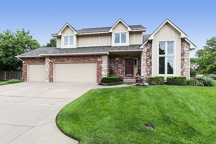 Stunning two story home with 3 car garage!!! Home has been updated and shows beautifully. The kitchen has been updated with granite counter-tops, tile back splash, stainless steel appliances and there is a pantry. There are two dining areas both with tile flooring. The informal dining area has french doors to the covered deck. There is also a family room with a fireplace and living room on the main level; both living areas have wood flooring. The powder room has been updated with granite counter-top, tile back splash, and tile flooring. The upper level has 4 bedrooms including the master suite. The master bathroom has french doors, updated fixtures, a whirlpool tub, a private shower and toilet area, and new tile flooring. The hall bathroom has also been updated with granite counter top, tile back splash, and tile flooring. The basement has a family room with new carpet and a spacious bedroom. There is also great living space in the back yard with a covered deck and a patio. The yard is gorgeous with professional landscaping and there is a sprinkler system and fence. Home is close to shopping and in Maize school district.