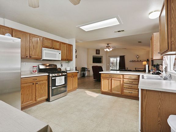 Immaculate 3/2 with inside laundry. Start with the front porch to sit on and relax. Move in ready for first time buyer, down sizing or investor. Lovely great room with a fireplace for cold winter nights ahead. Ceiling fans in great room and all bedrooms. Kitchen offers double stainless oven. Pantry area. Master bedroom has a walk in closet. Master bath has a walk in tub/shower for someone needing to sit during showering. Thousands of dollars spent on this. Refrigerator, washer & drier to remain. Large back yard with possible RV access. Plenty of room for gardening, kids to play in. Good sized covered patio. To top of this lovely home it comes with a Solar system under a Power Purchase Agreement. Don't miss this one.