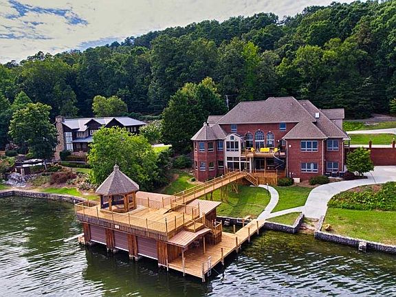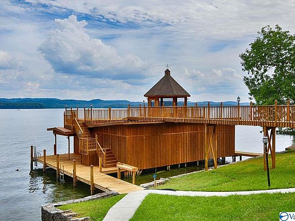 Luxurious waterfront home on the Main Channel of Lake Guntersville. This home has many features, including 5 bedrooms, 6 baths, a 3-slip boathouse with lifts. Granite counter tops throughout the home; 2 full kitchens; an elevator to all levels of the home; storm shelter; walkway to the boathouse top with deck and gazebo. Master bedroom on the main level and the home is handicapped accessible. Beautiful views from the large great room. Convenient location to Huntsville, Scottsboro and Guntersville.