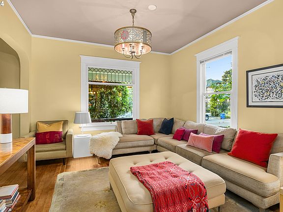 Secret garden sanctuary perfectly situated between Hawthorne and Division in the bustling heart of SE Portland. Pick fresh Fuji apples from the back deck and savor the rare and lush flowers that adorn the peaceful backyard oasis which produces a bounty of fruits, herbs, and vibrant blooms. This classic home has been well cared for and lovingly updated with Earth-friendly products throughout. The main level features gorgeous refinished Fir floors and a fantastic layout that flows nicely through the living spaces and out to the newly sanded back deck. Also on the main level are two bedrooms with good sized closets and the full bath which has been updated with a new porcelain pedestal sink and French chrome fixtures. The spacious upstairs features the large third bedroom adorned with Earthweave wool carpet and upgraded dormers that are both visually beautiful and inviting to spend time in. System updates include a new electrical system, new paint, and new beams in the basement which offers plenty of space for storage and potential finishing. Enjoy a year-round bounty of blackberries, pears, Rainier cherries, Fuji apples, strawberries, rosemary, mint, lemon balm, lavender, and other herbs while enjoying the sensory delights of vibrant and fragrant blooms. [Home Energy Score = 1. HES Report at https://rpt.greenbuildingregistry.com/hes/OR10230647]