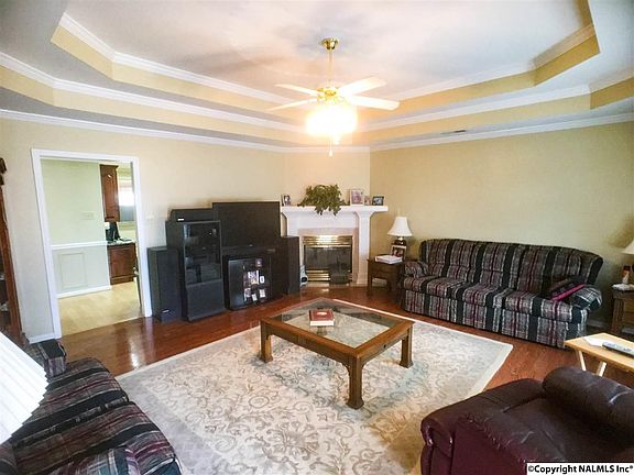 - LIVING ROOM DESC: Fireplace, Crown Mold, Wood Floor, Ceiling Fan, Trey