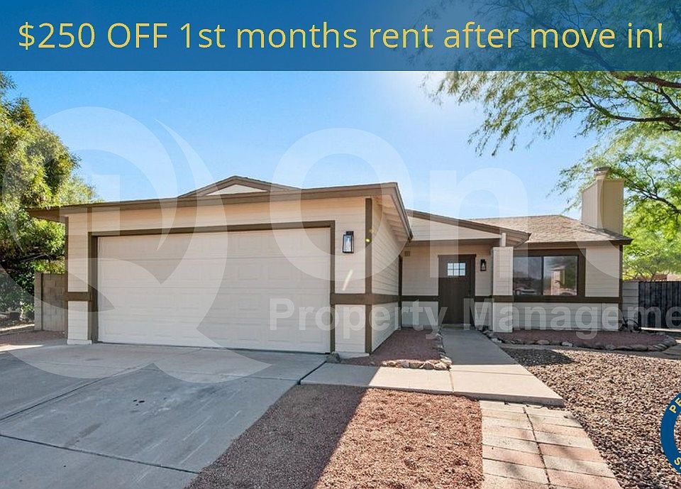 Coming Soon! Available on 11/5/2025. 1769 SQ FT! 3 bedroom, 2 bath home with a thoughtful single-story floor plan! The stunning kitchen boasts ample cabinetry and granite counter space and is complete with all kitchen appliances and a spacious dining area with a bay window. A sizable family room with a cozy fireplace perfect for entertaining and relaxing. Living room with ample natural light perfect for additional living space. Laminate flooring in all the right places. Primary bedroom complete with a spacious walk in closet and a private bathroom. Two additional bedrooms with ample closet space and plush carpet. Laundry room with washer and dryer included. Fully fenced low maintenance backyard with a covered back patio and desert landscape. Convenient Tucson location close to schools, shopping, and entertainment.