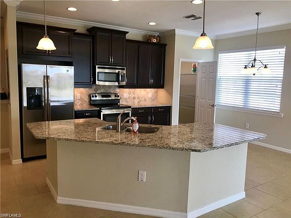 LONG LAKE VIEWS ! Like new! This Ravello carriage home features 3 bedrooms plus den, 2 baths, and a one-car garage. It has a split bedroom plan with plenty of space in every room. The master suite has room for a king size bed plus it has an on-suite bathroom and walk in closet. The kitchen features a large island open to the great room which is perfect for entertaining. It has all the features you expect including upgraded wood cabinet doors, granite counter tops, stainless steel appliances and a large walk in pantry. Brick laid 18-inch tile in the main living areas and carpet in the bedrooms! Enjoy the view of the lake off your private, screened lanai with a storage room. Creekside Preserve provides a maintenance free lifestyle with resort-style amenities. Creekside Preserve is conveniently located close to shopping, restaurants, beaches, entertainment and so much more! Located in Fort Myers nestled between the Estero Bay Nature Preserve and historic Mullock Creek, residents are immersed in a wealth of native beauty.