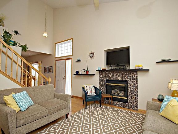 Sun filled end unit! 2 bed 2 bath original owner town home features soaring vaulted ceilings, wood floors, gas fireplace, breakfast bar, patio, loft, and large master bedroom w/walk in closet, upper level laundry. Great location off 35, close to lakes, trails, shopping and more!