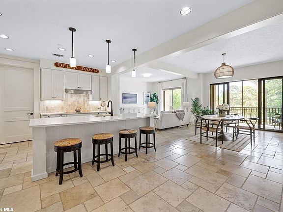 Coastal chic with a modern sophistication, this 1624 square foot two bedroom, two bath condo has been completely remodeled with superb attention to details in 2022 and is in pristine, turnkey move-in condition. Renovations include quartz countertops, counter height kitchen island, fresh paint throughout, new flooring in both bedrooms, new plumbing fixtures, lighting, custom built-in shelving in butler's pantry, primary closet, guest closet, custom built-in bookshelves in the living room, and painted cabinets throughout. Large butlers pantry/laundry room with extra storage. This stunning spacious open concept living space will delight you with breathtaking views open to the community lake and park-like setting. The kitchen is outfitted with Monogram appliances, warming drawer, convection/microwave, five burner range, a 28 bottle capacity cooled wine cellar, Blanco farm sink and a spacious curved quartz center island. The primary bedroom is filled with light from the window wall looking at the lake. The ensuite bath boasts double vanities, painted cabinets, a high end double shower and a jetted tub, promising the most luxurious bathing experience. The generous screened in porch magnifies the views of the lake and tranquil natural majestic oak setting. Your assigned covered parking space is convenient and close to the condo. An exterior storage room is also assigned. You will enjoy entertaining guests and watching sun sets on the roof top terrace equipped with grill, kitchen, fire pit and plenty of seating. Walking/biking trails everywhere and just a quick trip to downtown Fairhope shopping, dining, and the Grand Hotel. Gulf beaches are less than one hour's drive. Owners are licensed Alabama real estate agents.