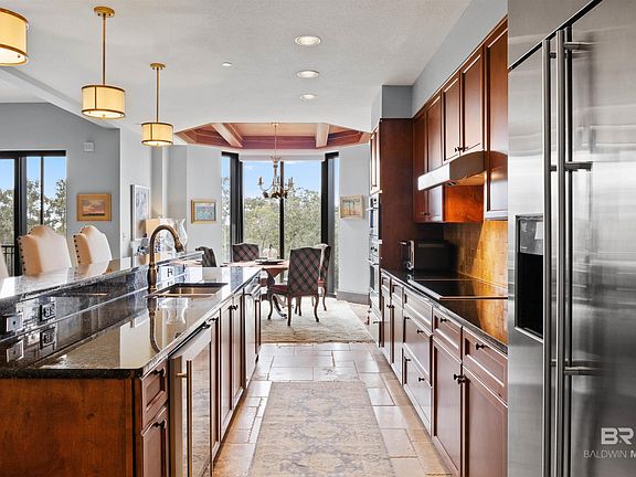 Experience unparalleled luxury and breathtaking views at the Colony at the Grand Bayview. Just a few miles south of downtown Fairhope, this exquisite 3-bedroom, 3 and a half-bathroom condo offers over 2300 sq. ft. of meticulously designed living space. Featuring stunning natural stone floors, high-end finishes, and an open layout, this home exudes elegance and sophistication. Floor-to-ceiling windows capture panoramic views, allowing you to immerse yourself in the beauty of the surroundings. The spacious kitchen is a dream, outfitted with top-tier appliances, custom cabinetry, and a large center island that effortlessly flows into the dining and living areas. The primary bedroom is a serene retreat, with ample space, stunning views, and a luxurious ensuite bathroom complete with a soaking tub, walk-in shower, and dual vanities. The walk-in closets offer abundant storage space, making this suite the perfect personal sanctuary. From the abundance of natural light to the harmonious blend of modern design elements and high-end finishes, every detail of this home is crafted for both beauty and functionality. Whether you're entertaining or enjoying a quiet moment, this condo promises an elevated lifestyle where luxury and comfort meet. Buyer to verify all information during due diligence.