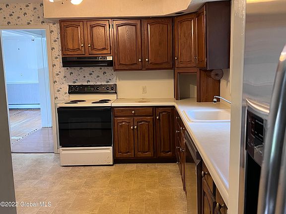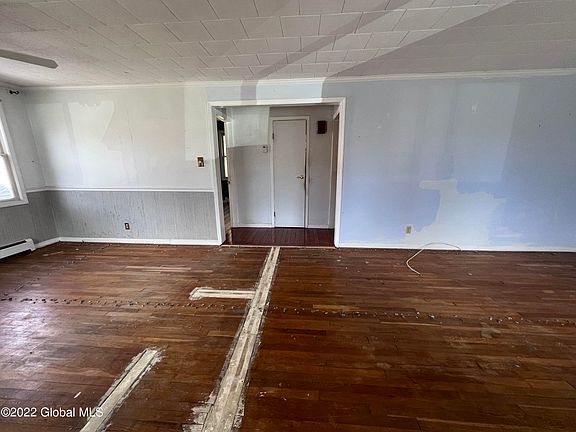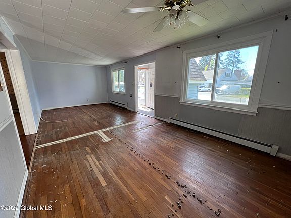 Affordable 4 Bedroom 2 full bath home is vinyl sided & is in need of some TLC to make it yours. This home features all large rooms including the fully applianced eat-in kitchen. The former garage has a pellet stove and has access to the screened in patio and the large fenced yard with a shed.