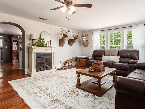 Charming 1900 farmhouse on 5 acres with the perfect mix of history and modern updates! Recent improvements (2024/2025) include new furnace, hot water tank, well, siding, roof, windows, and doors. Inside features original 1900s hardwood floors, a remodeled kitchen and office, and a stunning primary suite. Enjoy the new patio, sidewalk, and pool plus multiple outbuildings: a 36x112 barn with attached shop, two-car garage with water/electric and lean-to, and fenced pastures with three paddocks. Ready for horses, cows, goats, hobby farming, or country living just minutes from Columbus!