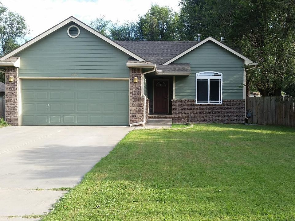 Large living/dining area with open access to kitchen. Two full baths and four bedrooms. One bedroom can be used as an office with built-in desk and shelving. Fenced back yard with large shade trees. Lots of kitchen cabinets with a pantry and plentiful countertop work space. Laundry room on main floor off attached 2-car garage. Tenants pays for all utilities, $35 application fee per adult household member