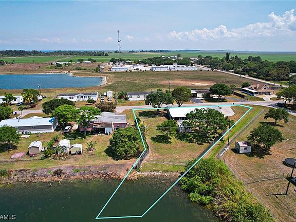 Beautiful home sitting on 3/4 acres of land/water! This corner property is located in the county, where there are lower taxes and lower electric bill (FPL), and just a few minutes from the City of Clewiston. The spacious back yard is double fenced with a brand-new chain link and privacy fence with ample sized openings for multi-sized vehicles. The septic tank and drainfield are new. The home itself has remodeled kitchen, bathrooms, updated overhead-plumbing and new roof! There are hurricane shutters for the entire home; a screened-in back patio; a 2 carport concrete driveway; office/laundry room inside residence; and newer A/C unit as well. This home is turn-key ready! Call today for your own private showing!