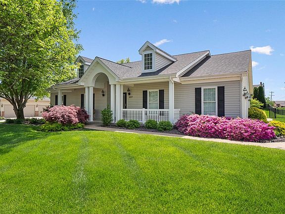 Spacious, pristine, meticulously cared for 3 bedroom ranch. Former display loaded with tons of special features. Gleaming hardwood throughout, soaring 10’ living room ceilings with full height windows and transoms, solar tube skylights, designer lighting, custom wrought ironwork, custom built ins flanking a gas fireplace and oversized 3 car garage are just a few highlights. Spacious, open kitchen with vaulted ceiling, 42” upper cabinets, stainless steel appliances, center island and pantry. Main level laundry. Primary bedroom en suite with dual vanities, water closet, separate tub/shower and walk in closet with built ins. Two other spacious bedrooms located near the hall bath. Partially finished lower level with half bath plus tons of extra space for storage or even more potential living space. Don’t miss the fantastic covered porch overlooking the lush, level backyard. Don’t miss this incredible move in ready Wentzville home!