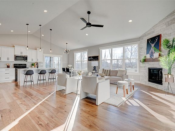 This stunning, custom-built, new construction home sits on a half-acre corner lot, in the very desirable Applewood Hills Estates development. Walk through the front door and be greeted by all the natural light streaming in from the wall of windows in the great room, which also boasts a vaulted ceiling, engineered hardwood flooring, and a floor to ceiling stone fireplace.