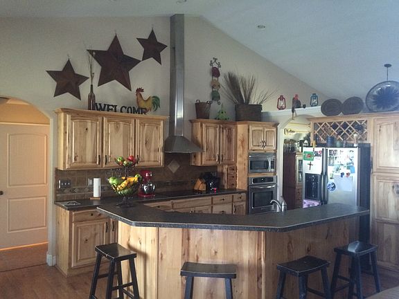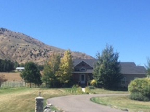 Over 3 acres of country living with amazing views of the surrounding mountains. Impressive log beams on this newer home with many features including hardwood floors, large rock fireplace, vaulted ceilings, beautiful kitchen, tile in bathrooms, bar area in basement with granite countertops, and so much more...Fully fenced property with irrigation water rights, outbuildings, big deck, garden area, and a 2 car garage.