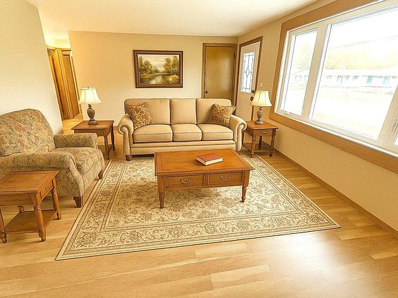 Pride of ownership shines throughout this immaculate ranch home, on the market for the first time in 50 years. Enjoy peace of mind with thoughtful updates, including a new roof, siding, and windows on the house and garage (per Seller). Many other updates have been completed, making this truly move-in ready. Enjoy an attractive backsplash in the kitchen, stove and refrigerator included, generous storage space, spacious bedrooms, updated full bathroom with tile floor, attractive vanity, and tile surround around tub, full basement w/poured walls. 2 car detached garage (access thru service door). Vacant lots on either side owned by seller. Seller may be interested in selling the vacant lot to the north (Parcel ID# 1217490000) with 1827 Olive, if a buyer would be interested. Virtually staged.