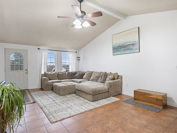 Looking for your own private country escape? Look no further! Nestled on over 14 acres of secluded bliss, this serene retreat offers everything you need for peaceful living. Drive up to your personal slice of country heaven, complete with a tranquil pond and a sandy beach, perfect for relaxation or recreation. Explore the beauty of nature, get lost on the winding trails, and immerse yourself in the quiet solitude of your own retreat. Step inside the home, where you’re welcomed by a spacious living area featuring ceramic tile. The kitchen boasts ample counter space, a convenient breakfast bar, and updated appliances, making it functional and practical. The expansive living room, adjacent to the kitchen, features a cozy wood-burning fireplace and serene views of the pond, creating a warm and inviting atmosphere. The large primary bedroom offers a walk-in closet and an updated bathroom for your comfort and convenience. The laundry room is ideally located, accessible from both the en suite and the kitchen for ease of use. The split floor plan offers additional privacy, with another spacious bedroom and full bathroom just off the main living space. Step outside the living room to the deck, a perfect spot to relax, unwind, or entertain guests while enjoying the serene surroundings. Don't miss out on this rare opportunity for country living in a central location. Schedule your private tour today and discover all the possibilities this rural retreat has to offer!