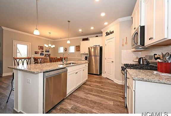 THIS IS A GREAT OPEN FLOOR PLAN WITH 4/BEDROOM 2/ BATH. TREY CEILINGS IN THE MASTER AND LIVING ROOM. THE KITCHEN COMES WITH GRANITE COUNTER TOPS AND BACKSLASH. GAS RANGE AND GAS WATER HEATER. YOU WILL LOVE THE BEAUTIFUL KITCHEN ISLAND WITH PENDANT LIGHTING & SEATING. THE FLOOR HAS BEAUTIFUL LAMINATE VINYL PLANK IN THE KITCHEN DINING WET AREAS AND ONE BEDROOM.CEILING FANS IN THE LIVING & MAIN BED. EXTENDED PATIO OUT BACK.LOCATED MINUTES FROM DOWNTOWN. ATTIC HAS BEEN FLOORED. NICE SHELVING HAS BEEN ADDED IN GARAGE.
