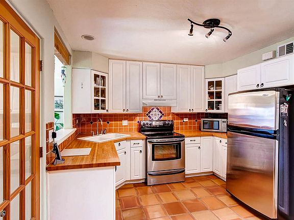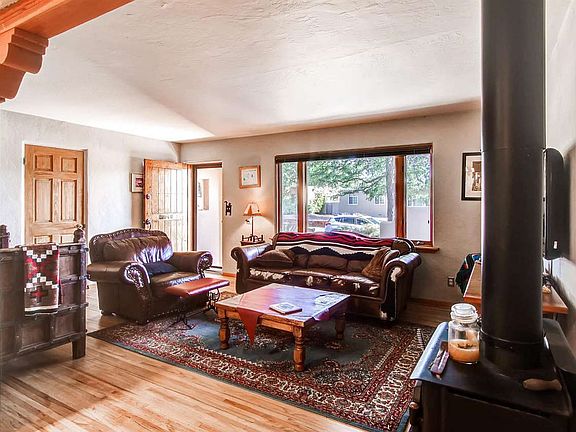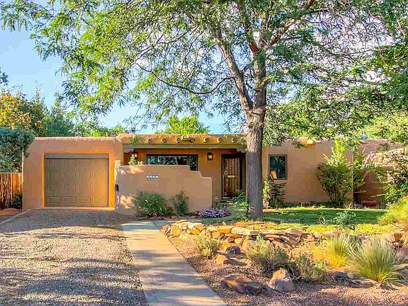On a quiet cul-de-sac in the Casa Alegre neighborhood, this remodeled 3 bedroom/2 bath home abuts the Acequia Madre and is filled with Santa Fe charm. The updated kitchen has saltillo tile flooring and beautiful oak countertops with light streaming in from the joining sunroom. The master bedroom is a true suite with vigas, a kiva fireplace and egress to a lovely backyard with a flagstone patio. All windows are double-paned and the property has a 2-yr-new roof with a transferrable warranty. The added bonus? This sweet Stamm home still has its 1-car garage! A definite must-see property.