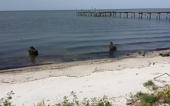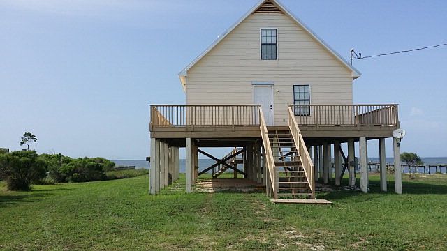 Great get-away's start here. Your piece of paradise with 1.3 acres, 100' of sandy shoreline make this cottage idyllic. Large wrap around porch gives great views of Mobile bay. Family home, never rented. Must see to appreciate.