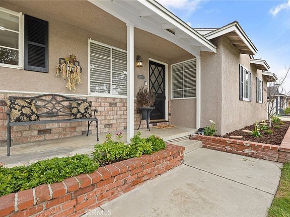 Welcome home to this charming single-story home nestled in an interior quiet Fullerton neighborhood. Lovely curb appeal invites you into a three bedroom, two bath home with two living spaces. A bright and open floor plan makes daily living enjoyable as well as creates great entertainment space. Front porch with brick accents welcomes you through an open entryway with access to kitchen and living area while bedrooms are nicely located on the opposite side. Beautiful kitchen boasts granite countertops, vast storage with white cabinetry, large island with breakfast bar, stainless steel appliances, recessed lighting, new flooring, and a sizable dining area - all with lots of natural light from several windows. A warm and inviting living room just off the kitchen includes a fireplace with large mantle, crown molding, recessed lighting and original wood plank floor that leads to the bedroom and bathroom side of the house. Master bedroom ensuite has a newly remodeled spa bath, appointed with marble flooring into walk-in shower with gorgeous tile work, floating sitting bench, inset shower shelf, custom made solid wood vanity with all new fixtures and lighting. Two more bedrooms have crown molding, ceiling fans, and new carpet. Main bathroom has a granite top vanity and has been updated with new vinyl flooring. Open and light family room just off living room includes high painted wood beamed ceilings, new carpet, and access to large backyard. Back patio is large and open, perfect for entertaining. Detached garage is in the backyard located at the end of a long driveway with space for RV parking. Spacious front and backyards. New central air conditioning and heat was updated in 2018. Close to shopping, schools, public transportation, downtown Fullerton, Fullerton Airport, and colleges. This home is move-in ready, a must see and won’t last long.