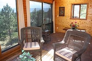 Incredible Views! Private lot in cul-de-sac nestled in the trees with Open Space to protect serenity. Freshly painted inside and out. Beautifully refinished hardwood floors. New Family room carpet, new tile flooring, new tile shower. Fantastic location close to amenities with easy access to I-25, AFA and Denver. This unique home offers passive solar heating along with a wood burning fireplace reducing heating costs considerably. Lower level sunroom area is set up for watering including floor drain. Fantastic D-38 Schools! With an additional 342 Square feet (not included in total sqft) in enclosed sun room space as well as 702.5 square feet of composite deck area, its the perfect Woodmoor home to enjoy the beautiful sunsets and Pike's Peak Views. The extra room in the lower level contains a sink and counter with cupboard space that would make an excellent craft room, potential kitchenette, office space or even an extra bedroom. Kitchen has plenty of cabinet space and extensive granite counter space. Don't miss the opportunity to enjoy the Colorado Lifestyle on this 3/4 of an acre gorgeous property!