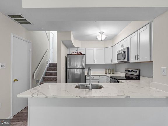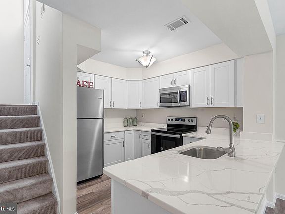The home you've been waiting for ... STUNNING remodel of entire unit; home shows like a model! Kitchen completely renovated with white Shaker style cabinets, gorgeous Calacatta Laza quartz counters, brand new stainless steel appliances and new lighting. Beautiful and stylish laminate flooring in kitchen, dining and living rooms, with new carpeting on upper level. New vanities and mirrors in both bathrooms and new lighting in lower level powder room. Owners bedroom showcases fabulous view of the lake out back and features three large closets. From the living room, step onto your expansive patio and enjoy the wonderful community lake and fountain - perfect for entertaining family and friends. Brand new hot water heater in utility room off kitchen and new storm door; laundry on bedroom level. Community features community pool, clubhouse, tennis courts, tot lots, walking paths and ball field - what's not to love?? Home located within walking distance to Olney's best restaurants, shops and grocery stores. Stop by the Olney's Farmers Market every Sunday to enjoy fresh produce, live music, local artisans and food - less than 1/2 mile away! Hurry and make this gorgeous home yours today !