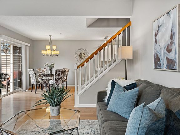 Wonderful, private, end unit townhome in high demand Eden Prairie location! Beautifully maintained hardwood and Italian ceramic floors throughout. Main level boasts 2 story vaulted ceilings with a spacious living room and fireplace. Walk out through your sliding glass door to your private backyard with patio for grilling and entertaining. Upper level features 2 large bedrooms with lots of closet space. Loft for an office or workout area and a full bath. Enjoy the convenience of the 2nd floor laundry. Siding and roof are less than 2 years old. Furnace, air conditioner, upstairs flooring, fixtures,faucets and hardware have all been recently updated, Within a few minutes' walk to scenic trails that connect to Mitchell Lake via path under Highway 5. Great for biking and park access. This home is move-in ready! Come make it yours!!