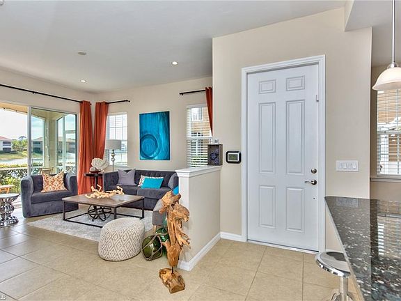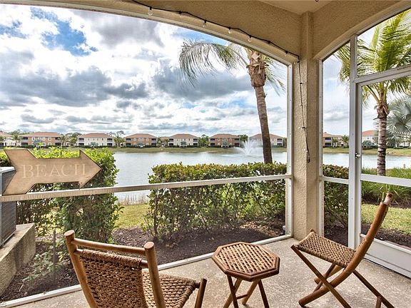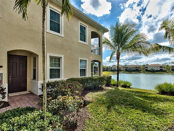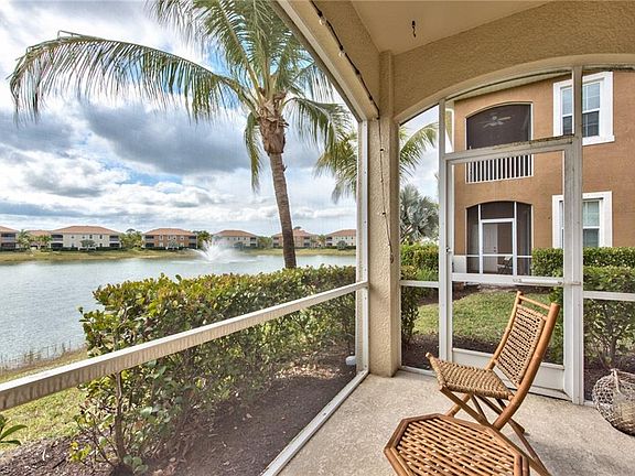 Stunning Lake View!!! Enjoy Florida sunsets on your private lanai overlooking the lake & fountain. Located just 3 buildings down from the community pool! This well maintained 2+den 1st floor end unit has a SW rear exposure w/ lots of windows providing plenty of natural sunlight. The Capri floor plan offers a great room layout w/ split bedrooms featuring 2 bedrooms, 2 baths, a den w/doors, & an attached 1 car garage. A large master suite offers dual sink vanity & a large walk in closet. Other features include tile in living & wet areas, wood in the den, 42" wood cabinets w/ under cabinet lighting, glass tile backsplash, SS appliances, granite counters in the kitchen & a surge protector for the AC. A separate storage closet is great for beach chairs & seasonal items. There are additional parking spaces are located next to this building. Creekside Preserve is a pet friendly maintenance-free gated condo community. The fees include landscaping & building maintenance, water, exterior building & flood insurance. Community amenities offer a clubhouse for entertaining, exercise room & resort-style pool. Just a short drive to Coconut Point, RSW airport & the area's finest gulf beaches!
