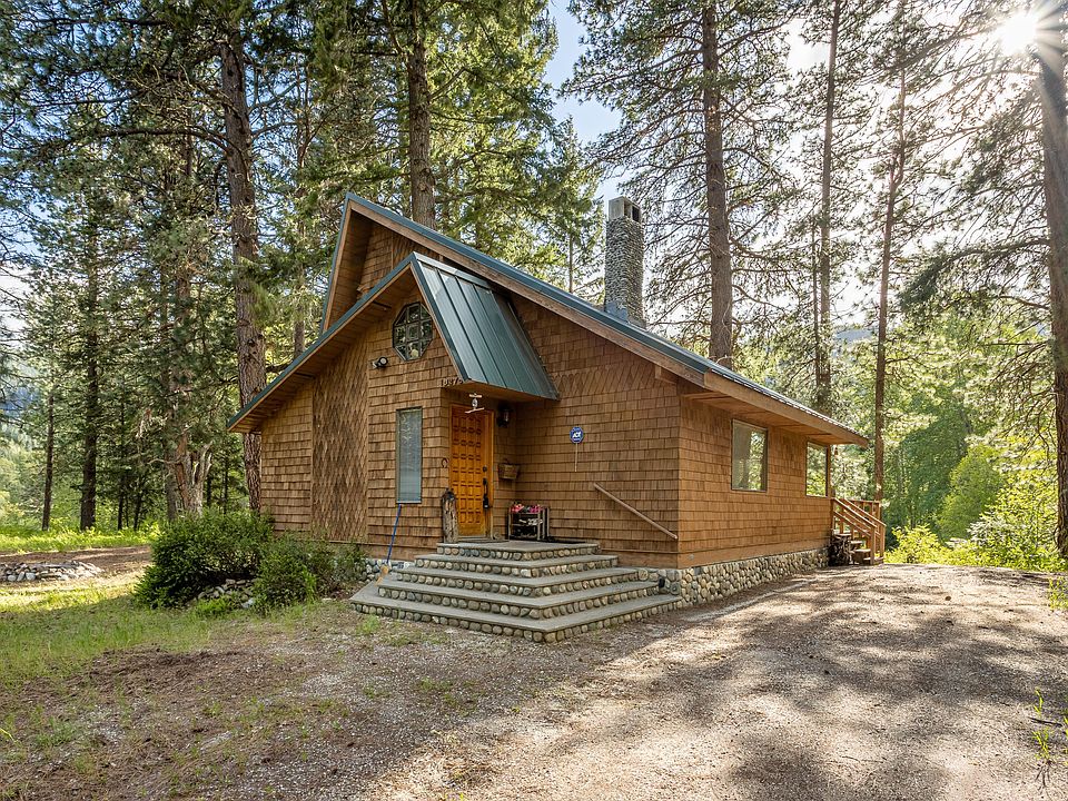 Start making mountain memories in this beautiful cedar chalet set on approximately 200 feet Nason Creek (TWO lots) ideally located between Steven's Pass and Leavenworth. This handsome, fully furnished cabin offers a timeless rustic interior with an open kitchen, living and dining space showcasing an absolutely stunning, 30 foot river rock fireplace. A cozy main level bed/bath plus a convenient sleeping loft with 1/2 bath are ready for you and your overnight guests. The expansive sundeck offers terrific outdoor living space with ample room for lounging and seasonal entertaining. Lush grounds showcase beautiful mountain and water views. A breezy, 20 minute drive to Steven's Pass; 30 minutes to all the amenities of our Bavarian village affords...simply a mountain enthusiast's dream retreat!