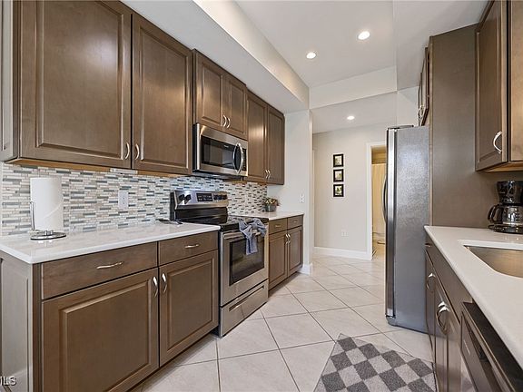 This furnished, TURNKEY carriage home offers 2 bedrooms + DEN, 2 bathrooms, and an attached 1-car GARAGE, with pond & fountain views. Step inside to an open, split-bedroom floor plan with high ceilings, laminate flooring, and a lot of upgrades, including new soft-close cabinets, quartz countertops, stainless steel appliances, and spacious bedrooms and bathrooms. Additional updates include a NEW A/C unit, NEW hot water heater, and NEW hurricane-rated exterior and garage door. Enjoy your morning coffee or evening from the screened-in lanai overlooking the water. Creekside Preserve is located in Fort Myers, which is a peaceful, gated community surrounded by a natural preserve for a quiet, private atmosphere while still being close to EVERYTHING. Community amenities include a clubhouse, swimming POOL, and fitness center. HOA fees COVER landscaping, water, exterior pest control, mulch, flood insurance and more—making for stress-free, low-maintenance living. Pets are allowed & no special assessments. Conveniently located just 5 miles from Coconut Point Mall for shopping, dining and entertainment—and only a short drive to the white sandy beaches of Southwest Florida. Schedule a tour!