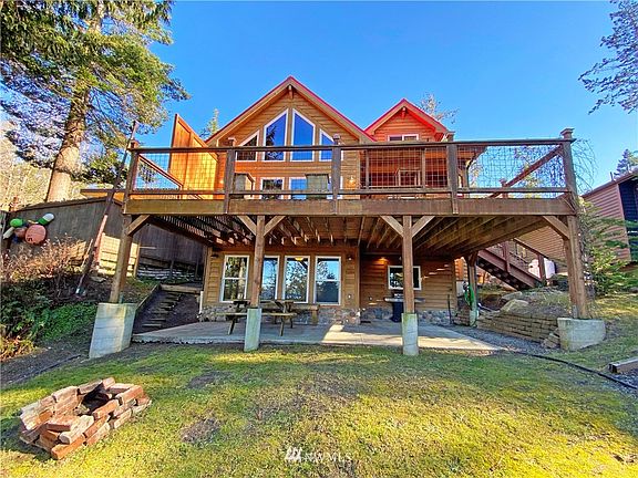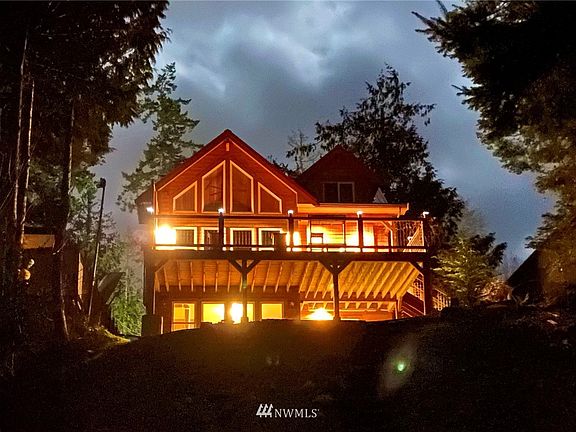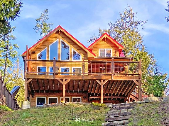 Enjoy sunsets from your west facing Retreat Puget Sound view home in quiet woodsy neighborhood on leased land. Custom cedar home feels like San Juan Island getaway yet near La Conner. Quality craftmanship and materials show throughout. Natural light fills the interior of 3 stories of this 4 bed, 4 bath gem. Cathedral windows in loft style main level showcase a view of Skagit Bay. Daylight basement boasts water view, a gas fireplace and covered patio. Stone tiled showers, solid doors, wood finished ceilings and cedar siding. Jacuzzi tubs in 3 baths. Bright airy entertainers kitchen, stainless appliances, and new barbecue awaits you on the huge cedar deck. Carriage House has expansive two car garage and upper level ready for your finishes.