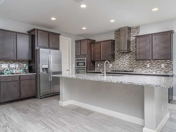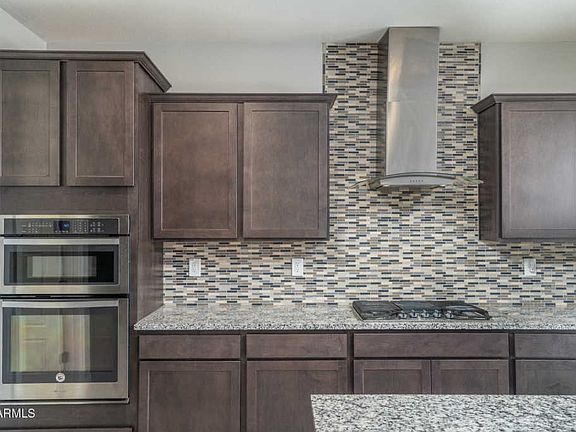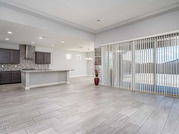 This move-in ready home offers 4 bedrooms & 2.5 baths in 2471 SqFt with an open great room, split bedrooms, & flex space perfect for a den, playroom, or dining area. The kitchen features dark maple cabinetry with crown molding, granite countertops, glass tile backsplash, gas cooktop, stainless exhaust hood & appliances, large island with breakfast bar, spacious dining area, & walk-in pantry with garage access-perfect for bringing in groceries! The private master retreat has a spa-like bath with dual vanities, soaking tub, tiled shower with bench & seamless glass door, and a roomy walk-in closet with access into the laundry room. Other features include an oversized 2 car garage with epoxy floors & service door, laundry room with cabinets & shelving, tray ceilings, granite countertops in ** both full baths, powder room for guests, tray ceilings, covered patio, and a large backyard awaiting your dream design! Estrella offers 3 resort-style resident clubs with pools, fitness centers & gathering areas; award-winning Nicklaus Design championship golf course, 72 acres of lakes, 50+ miles of paths & trails & retail/grocery/eateries/health services. See today!