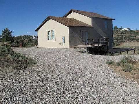 What a view. Great Price. Lockbox on Monday 8-19-2013 on the wrought iron fence. 3 tiered balcony.Great hillside location with views (180 degrees) across Peeples Valley from over 1000 Sq. Ft. of decks! Very comfortable tri-level with 2 bedrooms and 1 bath down and Master Suite upstairs. All bedrooms open to decks! Entrance level is great room with kitchen, dining and living areas. Worth the drive to see this nice home. 1 of a kind!