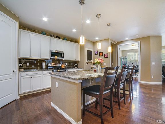 This highly desirable Springdale model has been upgraded from top-to-bottom and has a fully finished basement that is ready for your immediate move-in! Rare opportunity to own a home in Leyden Rock that sits on one of the larger lots. Open floorplan welcomes you in with wood floors extending throughout the main level, 9ft ceilings, and an abundance of windows streaming in natural sunlight. The great room features a cozy fireplace, dining area and a beautiful kitchen with granite countertops, tile backsplash, pendant lighting, gas range oven, and a center island with breakfast bar. You will also love the master retreat with private five piece bath and a large walk-in closet. The main level also boasts a study with French doors, two secondary bedrooms, a full bath with double sinks, and laundry room with built-in cabinets. The fully finished basement offers an additional bedroom, bathroom, and open concept with designer wet bar that is perfect for entertaining. Other features you don't want to miss out on includes the 3-car garage, south facing driveway, covered Trex deck, large yard, and Solar. Hot Tub included per Buyers preference. Great location, within walking distance to neighborhood park, tennis & basketball courts, and minutes from schools, shopping, and major routes for easy commutes! This is a Solar Community that will save you on utilities and the ownership of panels will be transferred at closing. Welcome Home!