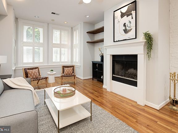 In the heart of dynamic Logan Circle, a red stone row house holds this stunning condo with hardwoods, exposed brick, a fireplace and bay windows. Architectural details add modern elegance, including tall windows and a geometric wall between the dining area and the kitchen. The owner~s bedroom has a renovated, en-suite, spa bath with rain shower and chic, modern tiles. Dine al fresco on the covered back deck that overlooks the back garden, shaded by a towering tree. Rich, wood cabinets line the hallway and provide ample storage space. A washer/dryer in the unit is a coveted amenity. The entire city is at your doorstep, from wine bars and award-winning restaurants to the theater. Shop at nearby Whole Foods or Trader Joe~s. Hop on the metro just a few blocks away.
