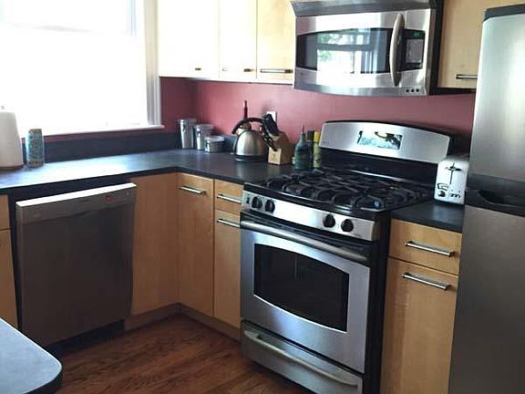 Roomy and fully restored three-level three bedroom townhouse located on a very quiet street just HALF a block from Stadium METRO. Nice wood floors, separate dining room, newly renovated, lovely kitchen with stylish modern features including island, concrete counters and stainless appliances such as dishwasher and gas stove. CAC, washer/dryer, bonus office/den, TWO full baths plus a powder room, ample storage throughout including well located space for bike and other oversize items, deck plus large yard/patio and PARKING for two cars. Available early February. No smoking and no pets, please. $3,150 + utilities (but SOLAR PANELS means very low electrical bills).