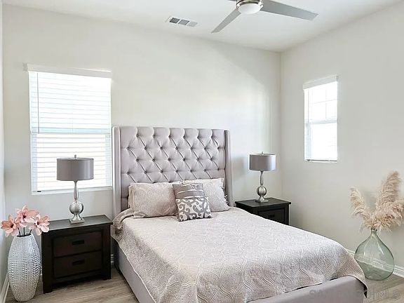 Discover luxury living in this newer-built executive home, thoughtfully designed with both elegance and a serene ambiance. This spacious residence offers a variety of high-end features, perfect for those who enjoy entertaining, embracing California’s vibrant lifestyle, or working from home. PROPERTY HIGHLIGHTS: Entertainer’s Dream Backyard: Low-maintenance space with a California Room, shaded BBQ area, artificial turf, and a tranquil water feature. All patio furniture included. Prime Location: A brand new elementary school is just at the end of the street, and new swim club and park facilities are only four doors down. Expansive Primary Suite: Spanning the length of the home, this grand suite includes a bedroom-sized walk-in closet. First Floor Guest Suite: Bedroom with ensuite, ideal for extended family or guests. Dedicated Home Office/Bonus Room on First Floor: Perfect for remote work or an additional bedroom. Enormous Second Floor Bonus Room: A versatile space for recreation or additional living needs. Chef’s Kitchen: Includes double ovens, walk-in pantry, and stainless steel appliances (included). Elegant Flooring: Luxury vinyl plank throughout common areas with plush carpet in the bedrooms. Upgraded Garage: Featuring epoxy floors and built-in cabinet storage. Convenient Laundry Room on Second Floor Modern Touches throughout: High ceilings, recessed lighting, central AC/heating, and three full bathrooms. COMMUNITY PERKS: Top-Rated Schools: renowned for innovative design and technology. Shopping & Dining: Otay Ranch Town Center and vibrant Millenia Development.