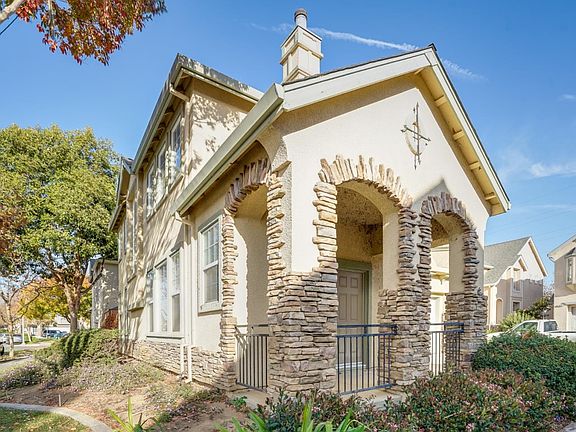 Timeless Luxury in this move-in ready storybook cottage home! With an ideal open floorplan, and large windows, and soaring vaulted ceiling, this home is light and bright with dramatic elegance. Formal dining space leads to well-maintained kitchen, with extensive storage, breakfast nook, and backyard patio access. Upstairs primary bedroom with ensuite bath and walk-in closet. Additional spacious bedrooms with bay windows and high ceilings. Low maintenance yards with mature fruit trees and plenty of space for summer BBQs. Nice location on corner lot in quiet neighborhood. Close to parks with walking trails & just 5 min. to Safeway shopping center.