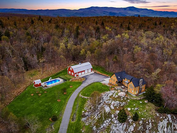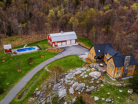 Breathtaking Panoramic Berkshire Views!!! Exclusively private custom built authentic "Timber Frame" with handmade mortise & tenon red oak retreat sits atop 9.45 acres of pure serenity. Property is surrounded by the Chalet Wildlife management area on 3 sides & consists of 6437 acres. This is the perfect private or vacation home to get out of the city & decompress. Hiking, biking & snowmobiling trails start right at your door step. Close to Notchview cross country ski area which offers free skiing to Windsor residents. Store all your toys in the over sized heated red barn which features 4 bays, fully insulated, propane heated, has a 3/4 bath with full storage above it & a commercial ice maker. Entertain your guest this summer around your heated in ground pool which features fiber optic lights, auto cleaning system & auto chlorine generating system. Come out at night and enjoy a BBQ with friends around the fire pit and dimly lit skyline. Motion activated lights line up the long driveway