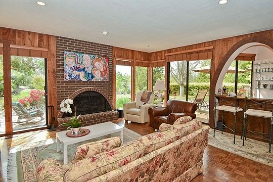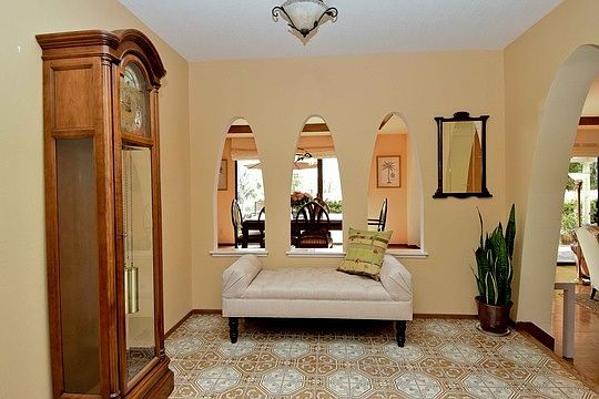 White Gate Mediterranean Single Story 1828 Lackland Drive, Alamo Stunning Mediterranean wood and iron double entry doors open the way to this beautifully updated and well maintained 4 bedroom 3 bath 2946* square foot single story home situated on .90 acres. Deep within the truly wonderful White Gate neighborhood, this home is picture perfect in every detail. This lovely home has a highly functional floor plan with great flow. It includes Mediterranean arched doorways and accents, a decorative tile entry, volume ceilings, soothing color scheme, light oak parquet flooring, accompanied by neutral carpeting completing this pretty picture. The Chef's kitchen features great storage with abundant light hickory cabinetry and stunning tile countertops. A gleaming stainless steel appliance suite, including a six burner Dacor gas range top and double G.E. ovens are invitations to culinary adventure. A double sink and high capacity Kenmore Elite dishwasher make after party clean up a breeze. The highly functional kitchen floor plan includes a large breakfast room with a lovely garden view. It flows directly into the spacious family room appointed with solid cedar paneling, a brick fire place and a wet bar. Large glass doors lead directly to a wonderful outdoor patio, play area and stunning landscaping. The formal entertainment possibilities of this charming home are extended with an expansive formal dining and a living room featuring a stone fireplace and an entire wall of glass with exceptional garden views. A large and lovely master bedroom suite with walk in closet and a private patio is the perfect adult retreat. The spacious master bath is nicely appointed with expansive quartzsite countertops, beautiful tile floors, double sinks with brushed nickel faucet fixtures a large window tub and a free standing shower. Two additional Jack and Jill bedrooms share a highly upgraded bath featuring ample cabinets, quartzite counter tops, double porcelain sinks and a shower tub combination. Another bedroom equipped with an updated full bath which is accessible from both inside and from the hallway is the perfect location for guests staying the night. The specialness of this wonderful home does not end with the interior appointments. The stunning garden area is the perfect integration of landscape design excellence and multiplies the comfort and entertainment possibilities of the total living space. It is a lovely blend of artful decking, arbor, lawn and garden. In addition it features a large orchard with many varieties of fruit trees including: Blenheim apricot, peach, plum, pear, pistachio, walnut and pluots. This lovely home also features a 3.5 car garage with separate work room, a circle driveway and is within in walking distance of 12 years of exceptional SRVUSD Schools. Price Available Upon Request *Buyer to verify Square Foot measures
