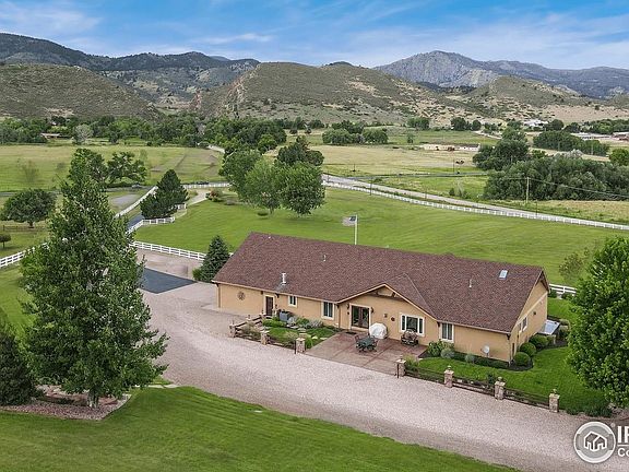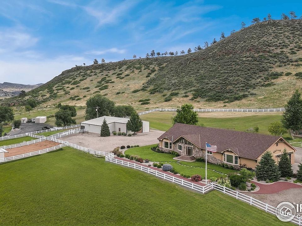 Discover your dream ranch home. Horse, animal enthusiast and serene nature retreat. Stunning large ranch home on nearly 9 acres close to Loveland and all amenities. Welcome to your personal sanctuary, where rustic elegance meets modern comfort! Ranch home with panoramic views offers a perfect blend of spacious living. Ideal for horse, animal lovers, hobby farm and nature enthusiasts alike. As you approach this impressive well maintained updated property you are greeted by a gated entrance, fully fenced property that opens to a lush pasture for horses and animals, complete with fully equipped barn, corral, tack room and loafing shed ensuring your animals have the best home possible. Step inside this stunning home and you will immediately appreciate the craftsmanship and thoughtful layout. The heart of the home features an open concept living area bathed in natural light, highlighted by an inviting fireplace that adds warmth and charm. Perfect for entertaining, the spacious great room seamlessly transitions to a gourmet kitchen, ample counter space, oversized island for casual meals and a dining room. Four generously sized bedrooms with two being primary suites. The two primary suites are designed for relaxation and views of the landscape, featuring ensuite bathrooms, walk-in closets, one features a cozy fireplace and water feature. Elevator access and exterior entrance to fully finished Rustic Western basement with a large non-conforming bedroom, ensuite bath, multi-purpose room and a bath. 2800 sq.ft. insulated shop/garage offers endless possibilities. Use as a workshop, garage or additional storage for all your toys and outdoor equipment. This exceptional property doesn't just offer a home; it invites you to embrace a lifestyle. Experience the magic of country living at its finest! Property has both a well for exterior watering and is on Little Thompson Water. Fire hydrant at entrance to the property. Don't miss the opportunity to make this property your own.